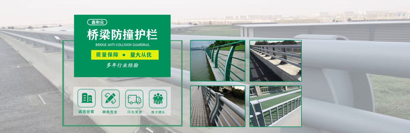 山东鑫和众金属制品有限公司主要产品有防撞护栏,桥梁护栏,道路护栏,河道护栏,不锈钢护栏等护栏。提供设计方案,一站式定制,包您满意价格优惠,欢迎来电咨询! 公司常年从事销售护栏防撞护栏,桥梁护栏,道路护栏,河道护栏,不锈钢护栏,桥梁钢护栏,河道灯光护栏等。产品广泛应用于桥梁、河道、旅游景区、道路、公路、公园、小区、景观、道路防撞等领域。 公司产品均采用优质不锈钢材料,符合相关标准。各种型号不锈钢复合管及护栏,质量严格把控。产品强度高、耐腐蚀、焊接牢固、抗冲击、性能好,防撞护栏结构简单、美观实用大方。 欢迎前来订购!...